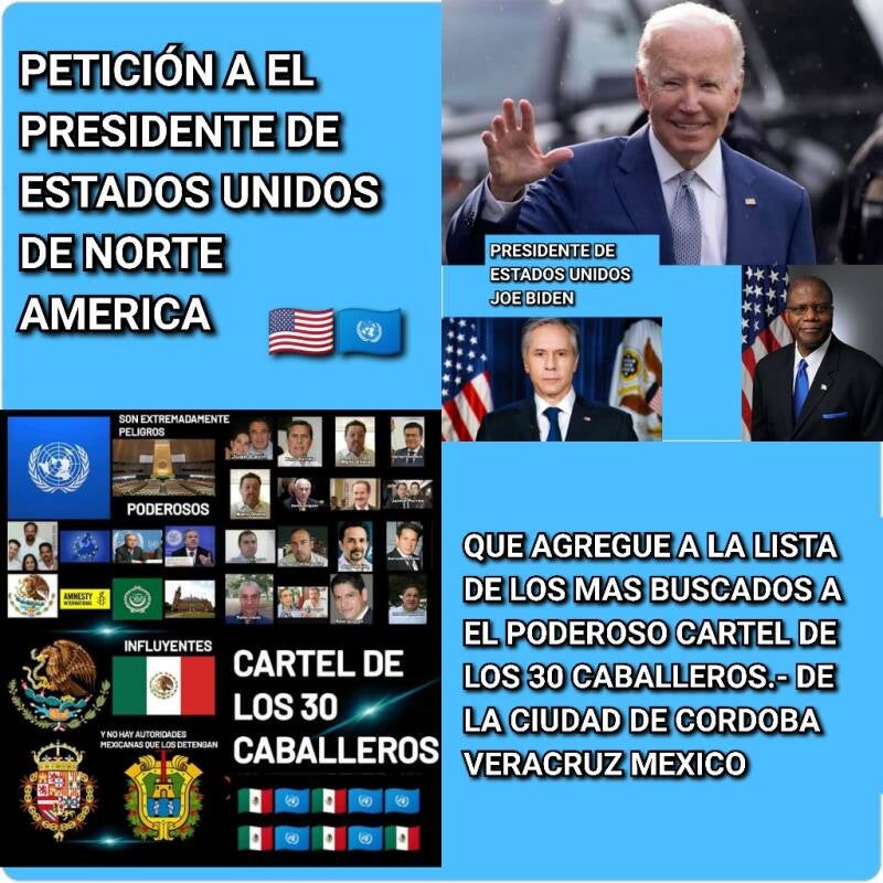 con la administración tanto presidencial con ANDRÉS MANUEL LÓPEZ OBRADOR PRESIDENTE DE MÉXICO y a su vez con el gobernador de Veracruz CUITLAHUAC GARCÍA JIMÉNEZ denunciándolos ante las naciones unidas ya que hacerlo en México y bajo las leyes de mi nación México tienen los de el cartel de los 30 caballeros el poder social económico y político de corromperlo